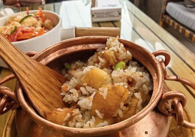 小锅饭又成为了这次用餐的一大亮点。作为招牌主菜主食,它配料丰富,肉沫、青豆的搭配增添了口感的层次,特别是那脆爽的土豆和带有少许锅巴的米饭,咬上一口,香脆可口,香气四溢,让人回味无穷。这样的美味实在是值得大力推荐,相信会成为很多人的心头好。