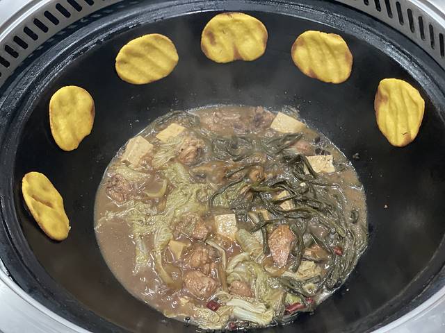 再推荐一家:宋家大锅台!在博物馆的后面,附近好像就这么一家还营业的,是铁锅炖,唯一的问题就是时间长,但有时间非常推荐,巨巨好吃!这么一大锅都不到100,豆角白菜特别特别烂乎,肉也给的很多,我们买了两人餐是四个贴饼,结果老板娘怕我们不够吃直接给贴了六个,人巨好,家里的小朋友也超乖。经济实惠,量大好吃,时间充裕的话非常推荐大家试一下!