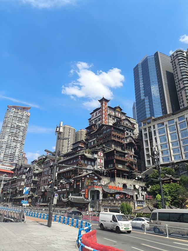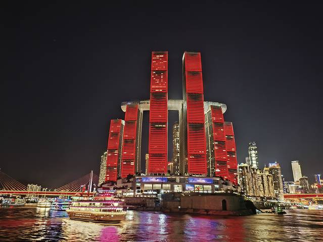 洪崖洞位于长江和嘉陵江交汇处的渝中区,是重庆的地标性建筑之一。它依山而建,错落有致,形成了别具一格的“立体式”景观。这种融合了传统巴渝文化和现代都市风格的建筑,既展现了重庆的历史文化底蕴,又凸显了现代都市的繁华与活力。里面是美食和住宿。从外往里看每到夜幕降临,灯光打开,宛如一场灯光与建筑美的融合,站在观景台上,可以一览两江交汇的壮丽景色,感受重庆的独特魅力。