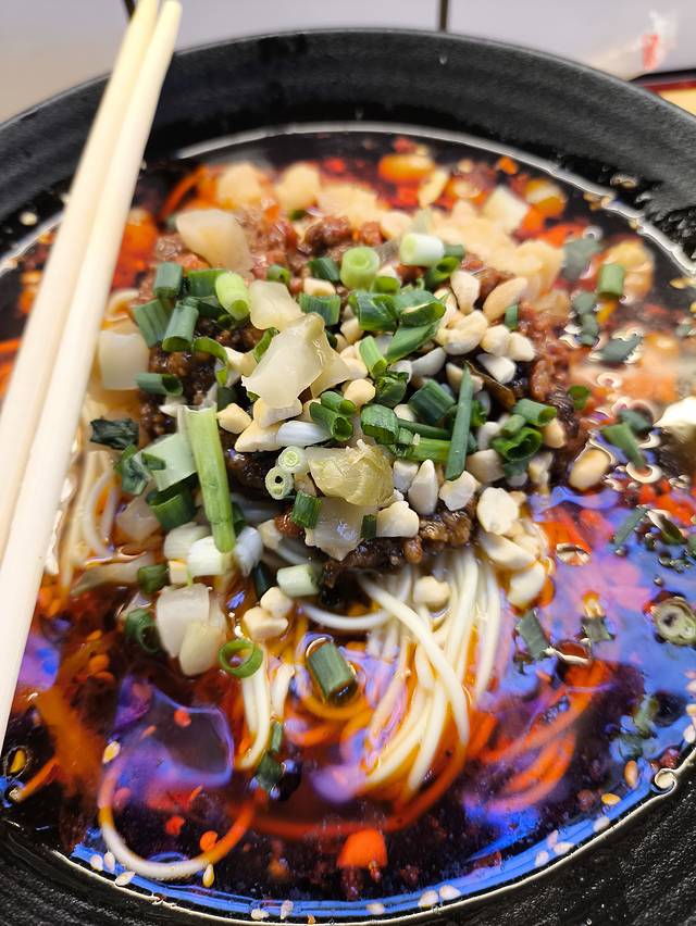 小面:在煮熟的小面上面,浇盖肉臊子,面条口感劲道,入口都是香味,吃完满嘴麻麻辣辣的。
