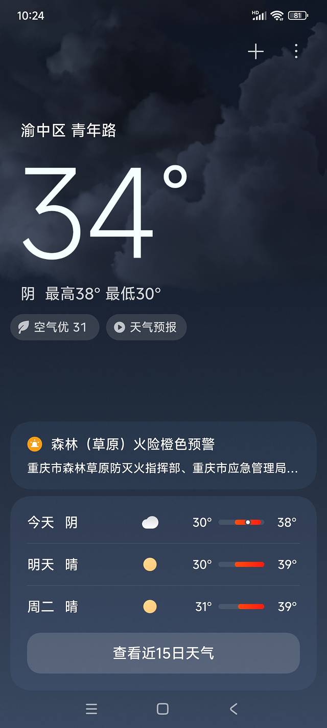 天气(热)重庆的热比容嬷嬷的针还要毒,室外热浪袭人,吹的风都是热得。去的时候是7月,我一个南方人从来没在南方中暑,第一天居然在重庆中暑了。一天5杯500ml的水。在路上就是不停找水喝。