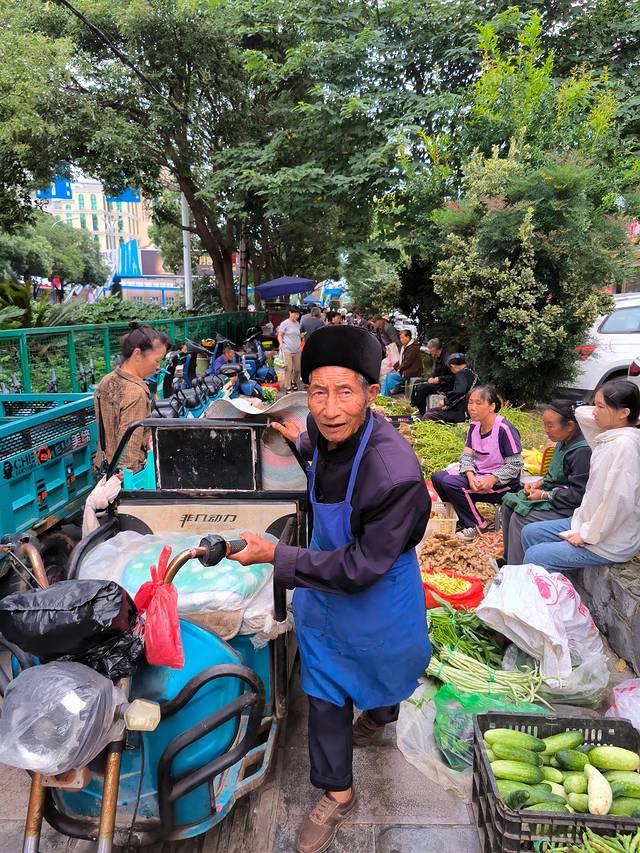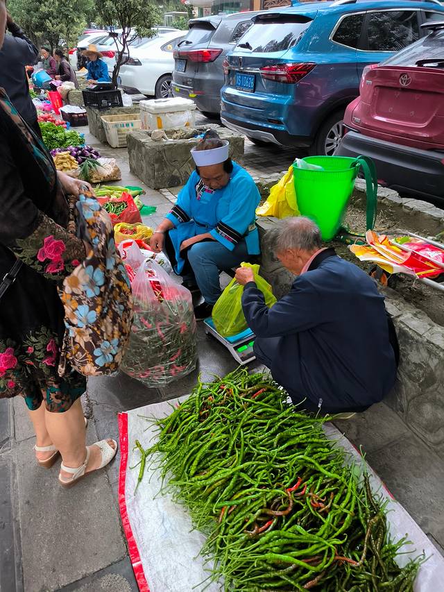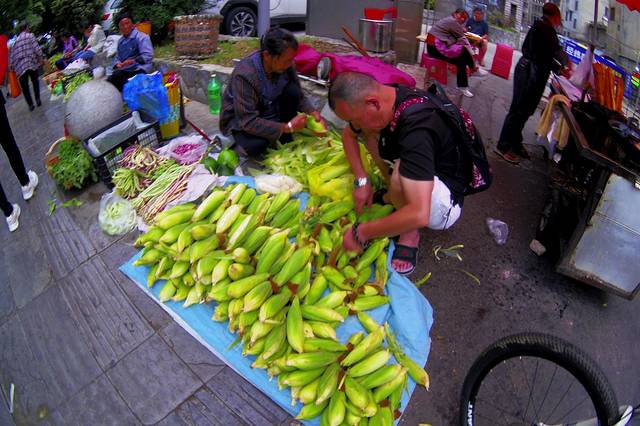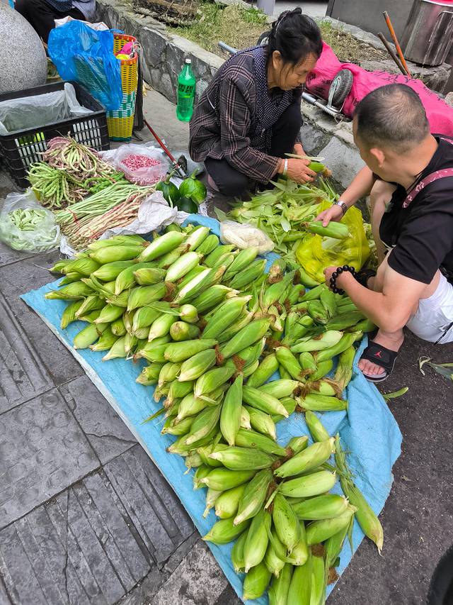 酒店门口的集市非常有烟火气。玉米才一块钱 一斤。