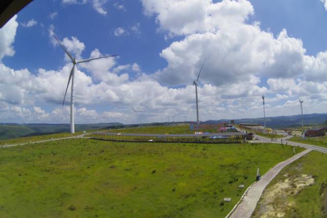 群山起伏,蓝天白云绿草相接,再配上落日残阳,旋转的风车,活脱脱一幅唯美的草原油画。 在大草原上,日可观云海、日出、日落;夜可赏星辰、龙里万家灯火;还可以开展骑马、露营、游船、放风筝、烧烤等老少皆宜的活动,夜晚在篝火广场旁围炉舞蹈,尽可以体验这里独特、古朴、浓郁的苗族风情。