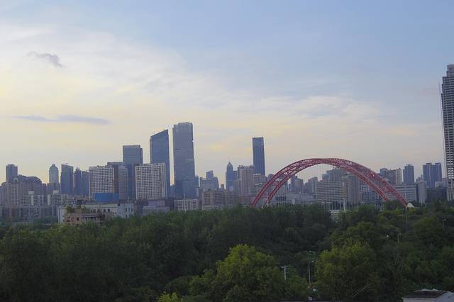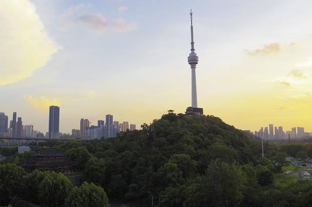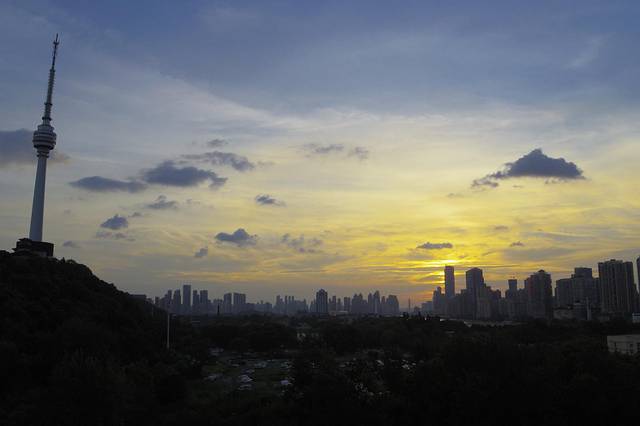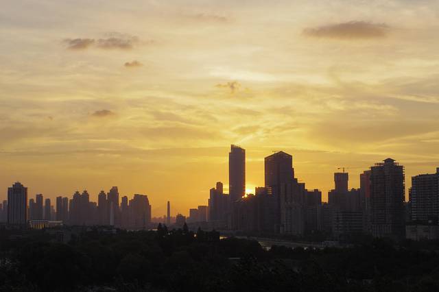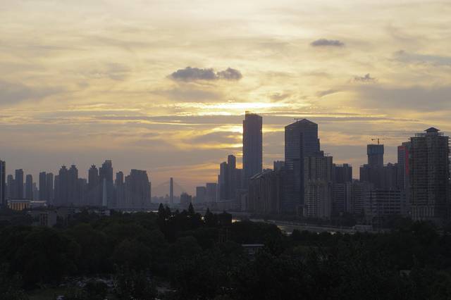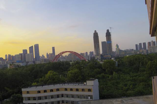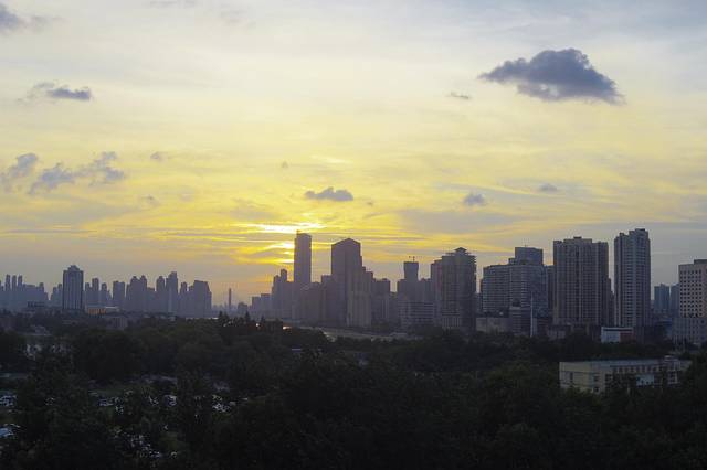 本打算经过湖南再玩几个景区,车外的温度显示40度,最高的时候42度,果断放弃,直奔武汉。到达武汉已是晚上7点多,当时的温度居然38度。宾馆外的夕阳还是非常漂亮的。