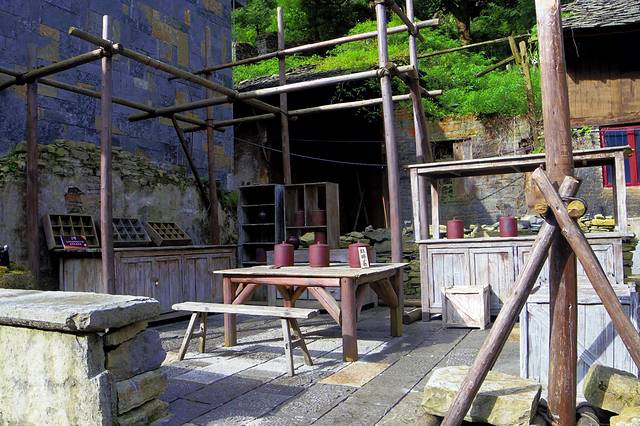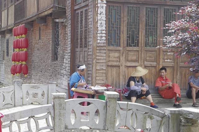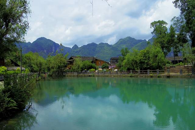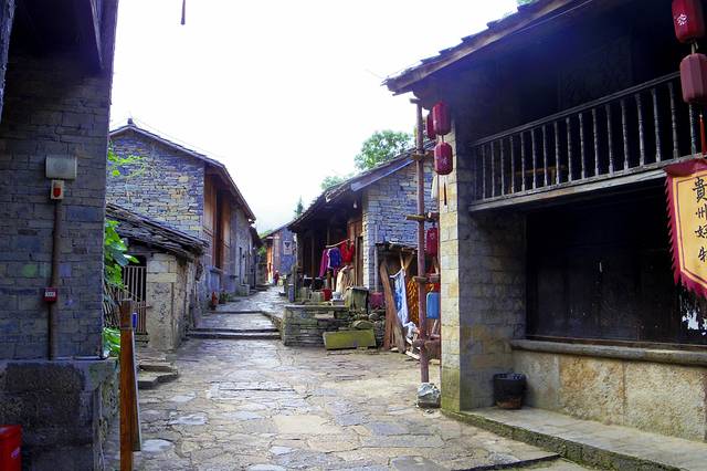 在元代就是历史上有名的顺元古驿道上的重要驿站,名"饭笼驿"。明初时,朱元璋调北镇南,在这里大量屯兵,兵来自江浙汉族,本世纪初被当地儒士改名为"天龙屯堡"。走进天龙屯堡,仿佛走进梦的巷子,600年前的战事已经随着岁月远去。春天的寨子是灵动的,我们到的当天,一个两百人的旅游团从贵阳赶来,屯堡姑娘操着地道的普通话讲解着屯堡故事、明代遗风。景区解说导游全是天龙的农村姑娘,她们成为当地农民参与办旅游的一个亮点。