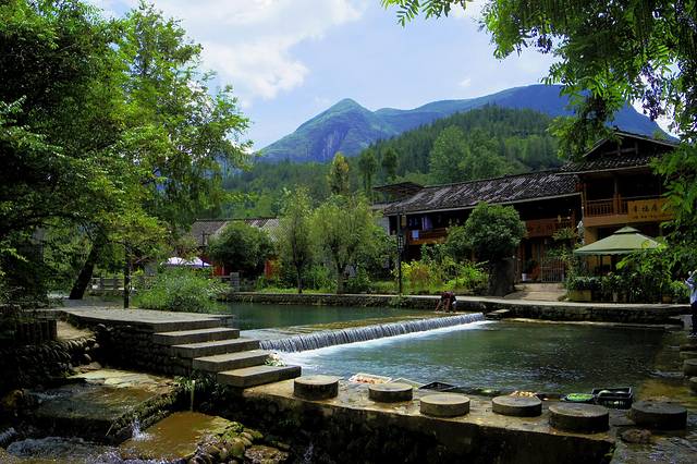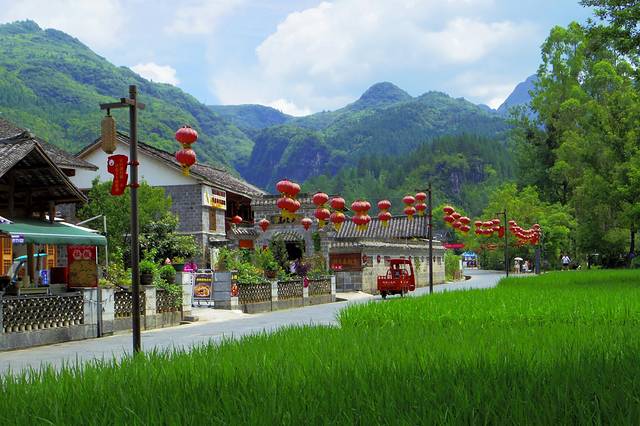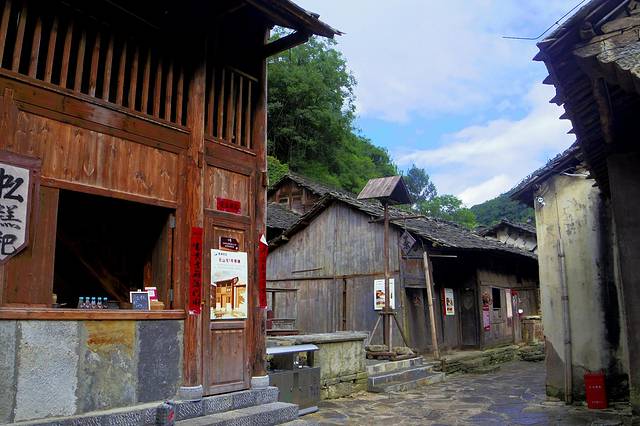 去云门囤的路上途径云舍土家族村,77公里。云舍村坐落在太平河畔、山地河谷喀斯特地貌中,属亚热带季风湿润气候,村落沿江沿河谷而居,东倚秦岩坡、西傍坝元坡、里有神龙潭、外有太平河,两条河流穿村而过,寨内青石小巷连接全村,展现出错落有致、聚散相交的分布情况,村内神龙潭有着一项特色功能,能够凭借水位涨落来预报天气,流传着非物质文化遗产--古法造纸,被誉为"中国土家第一村"。