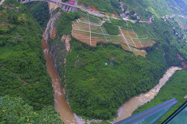 鸡鸣三省,东经105度18分至105度19分,北纬27度40分至27度42分,地势南高北低,山峦起伏,岩溶裸露,河谷深切,观音岩脚赤水河最低海拔690米。鸡鸣三省小庄子座落于观音岩口,处在林口青龙山从康家大营梁子拖下来至观音岩口的缓坡地带上,是典型的喀斯特地貌。云贵川三省相互间流淌下来的两条河流的交汇处——三岔河,自此以下就有了一个响亮的名字:赤水河。伫立在河间的礁石上,看两条河流欢快地汇合在一起后滚滚东流,让人遐思邈邈,她一路向前,为川黔两省的酿酒产业立下了赫赫功勋,成为誉满天下的“美酒河”。在鸡鸣三省的绝壁上凿有一条栈道直通河边,这是一条长800余米、总计1385步石梯的“之”字形栈道,沿着栈道往下,入眼处尽是一道道美不胜收的风景。平整的石梯、坚固的护栏,护栏外丛生的本地小箭竹比比皆是,异常青翠。到此,赤水河上游全部流出云南,进入贵州与四川境区。云南镇雄县的有关资料记载,赤水河上游流经云南境约有100公里,河水几乎未受污染,但是河两岸坡高山大、水土流失严重。