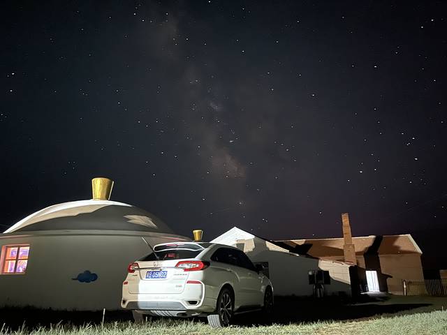 在开2小时就到贡格尔草原,挺辽阔了基本上没啥山了,如果不去达里湖去达达线就在贡格尔口下高速,直接到达达线,我们在下一站达里湖下的,因为我定的住宿2晚在达里湖,中午到达里湖,半路上有个火山可以拍拍照,晚上去锡林郭勒吃饭开车1小时,晚上就在民宿门口拍星云。达里湖岸边有挺多住宿但是晚上太吵,有灯光看不见星星,我们住的地方离岸边开车半小时,挺偏僻所以出门就可以看星星。