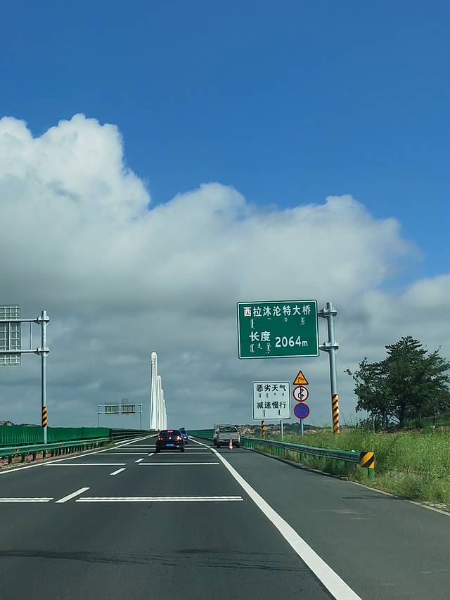 到达克承高速桦木沟口上高速,高速开一会到西拉木伦特大桥,过了桥就是服务区,可以下来走到桥上拍照片,西拉木伦河挺出片,跟大峡谷差不多。