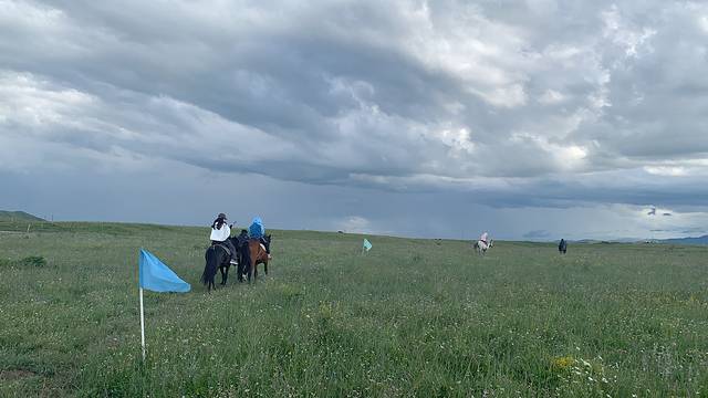 一路上很多的马场,能骑马骑牦牛,开沙滩车的都有。我们找的这家25一人,骑一圈大概有几百米吧,孩子们来来回骑了好几次,第一圈是让老板牵着马走,后面都是让老板骑着马带着,小跑起来。傍晚的草原还是有点凉的,都穿上了外套。