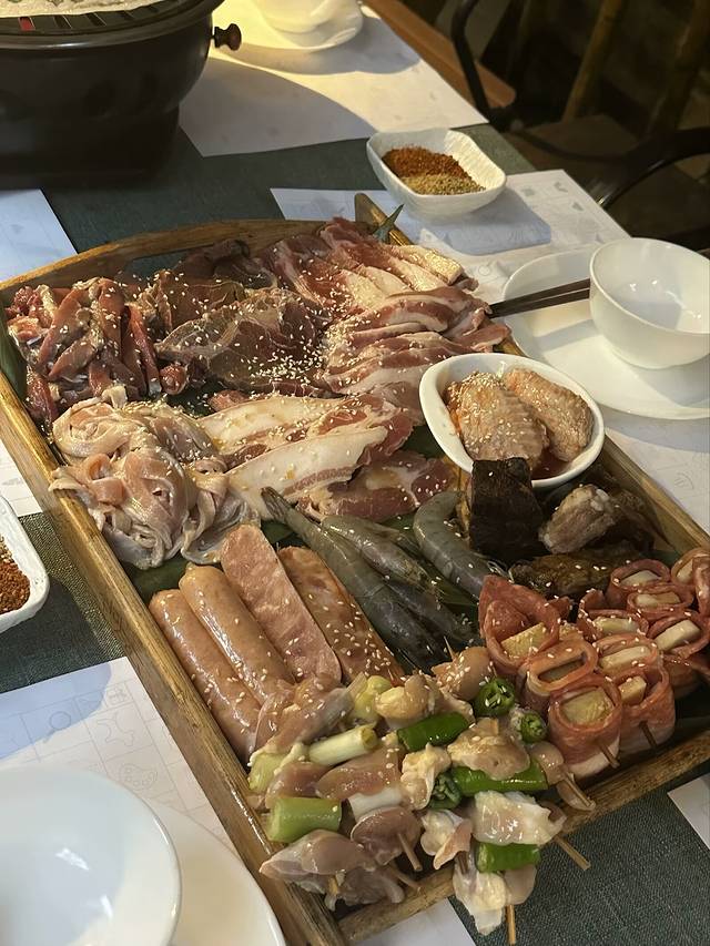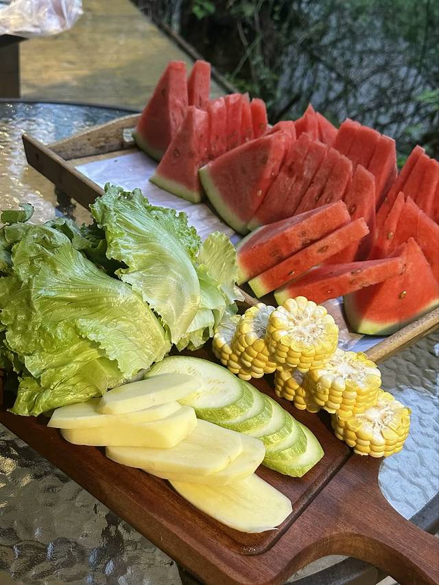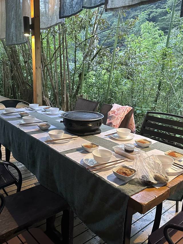 在酒店吃的烤肉,吃饭的环境不错,旁边有竹林,有小溪,还下了阵小雨,就是烤肉味道一般。