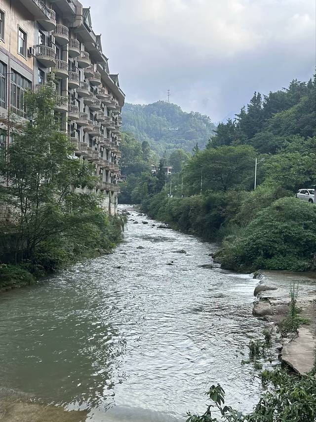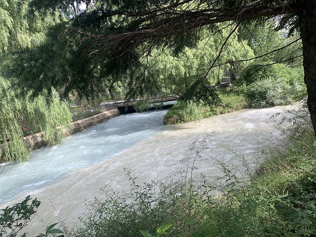 停车场到景区门口我拍的,两种颜色的水混流在一起。我查了下好像是白河和黑河交汇,然后变成白水江。