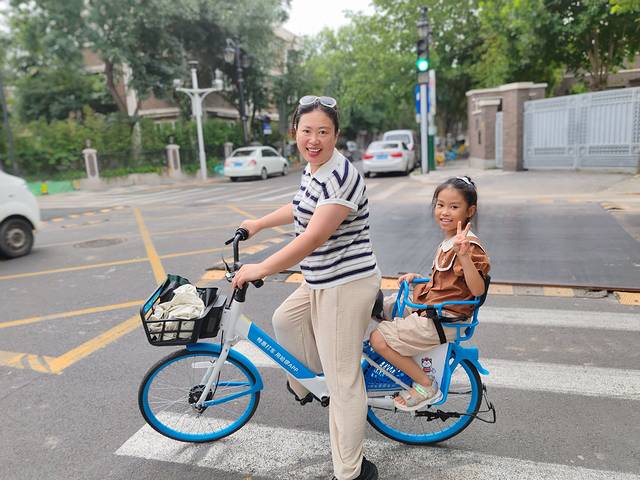 儿子一辆 妈妈带妹妹一辆共享单车 一起go go go