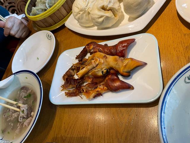等了大约15分钟,安排了位置,开始吃饭了!推荐他家的羊汤,15元一碗,还有包子、羊蹄、羊肉串、羊腿、烧鸡都好吃!