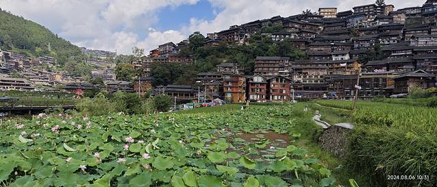 从贵阳出发坐高铁很快34分钟就到凯里南站,从凯里南站到苗寨大概需要50分钟,实际因为西门到北门很堵,一点点路程堵了一个小时,一共花了2个小时。暑假高峰期人很多,民宿老板说8月15日以后人就很少了。买票的人也很多,因为我们都符合免票情形只能线下。有很多免票政策的,大家可以百度搜索一下。现在的苗寨真的好热啊,没有贵阳凉爽。