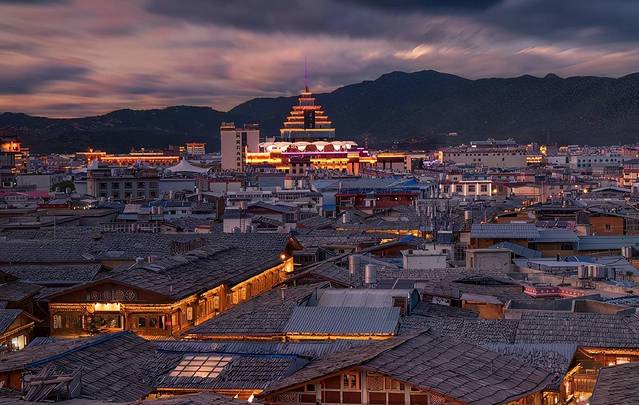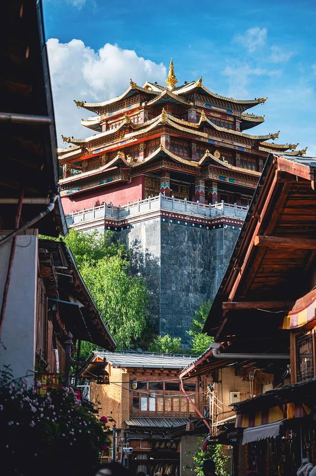是中国保存最好、最大的藏民居群,同时也是茶马古道的枢纽。古城的建筑布局犹如八瓣莲花,中心是月光广场,古朴的藏式木屋紧紧挨在一起。