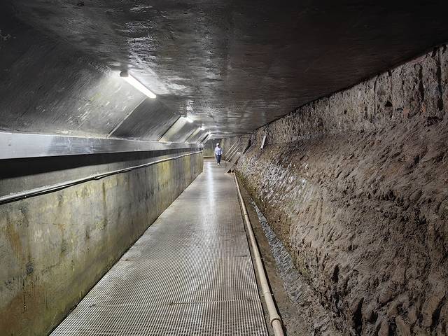 参观大坝,首先经过大坝坝体内的隧道口,展示了新老坝体结合部的处理。