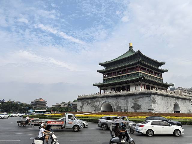 西安钟楼位于陕西省西安市坐标中心,始建于明洪武年间,有着600多年历史,是中国现存的同类建筑中体量最大、保存最完整的钟鼓楼。钟鼓楼为钟楼和鼓楼的合称,均为中国古代的报时建筑。钟楼是一座重檐三滴水式四角攒尖顶的阁楼式建筑。钟鼓楼合理的建筑结构、华丽的建筑色彩、典雅的装饰构件,都具有浓郁、鲜明的民族文化特色,是西安标志性建筑物。全国重点文物保护单位。