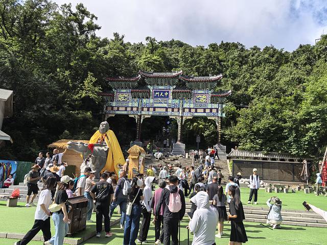 老君山中灵索道上站步行5分钟后到达中天门广场。