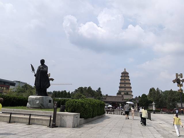 大慈恩寺门口的唐玄装像。玄奘(602-664),唐代高僧,我国汉传佛教四大佛经翻译家之一,中国汉传佛教唯识宗创始人。也就是唐僧,是古典名著《西游记》中的人物,俗家姓陈,乳名江流儿,法名玄奘,号三藏。
