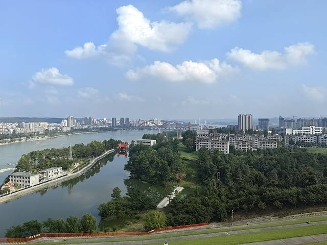美丽的丹江口市区。丹江口市古称武当县、武当郡、均州,有“中国水都、亚洲天池”之称。毛泽东主席在地图上指着丹江口,提出了“南水北调”[72]。中共中央政治局成都会议,于1958年决定修建丹江口大坝。