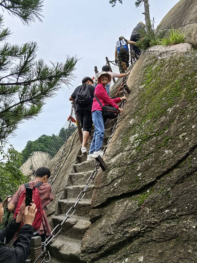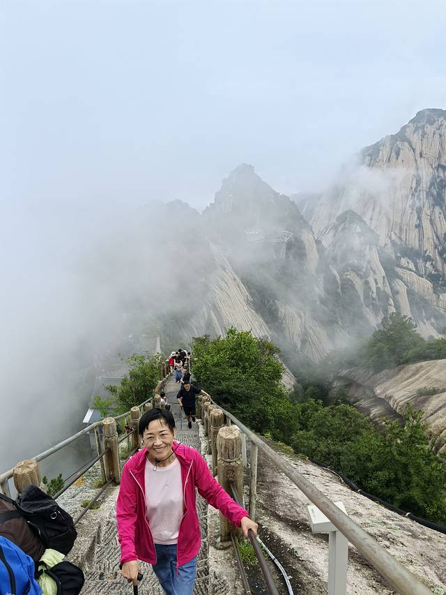 山里的雨,说来就来,说走就走。雨后的雾也来得很快。因为雾太大,左右都看不见,华山第一险道也不觉得怕了