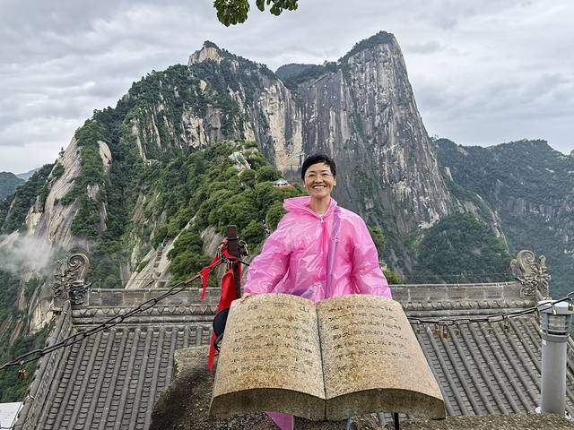 华山是五岳之一,很早就名声在外。《射雕英雄传》《神雕侠侣》的流行,让华山的名气更大了。金庸先生很喜欢华山。2003年,金庸曾经前往陕西一游,参加为期6天的“华山论剑”大型文化活动。期间,金庸欣然登上华山,写了“华山论剑”四个字。这四个字永久雕刻在华山北峰上,成为许多游客必到的打卡之地。我今天拿拐杖当剑。