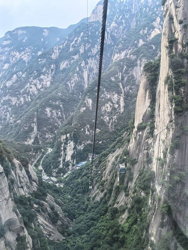 游览华山费用有点多,门票160,进北峰索道车费20,北峰索道单程80,西峰索道单程140,西峰索道下站到游客中心车票40,合计440元。这是索道上北峰。