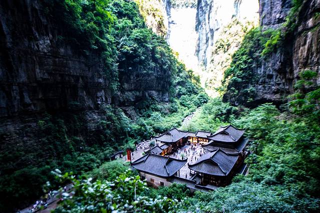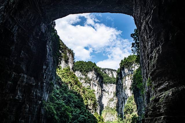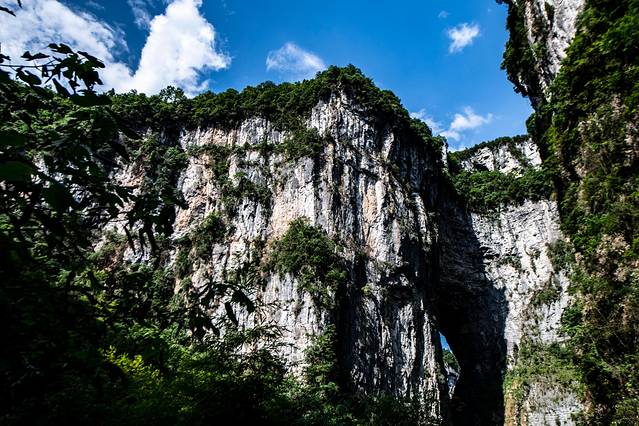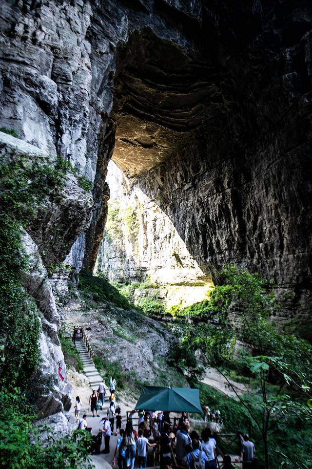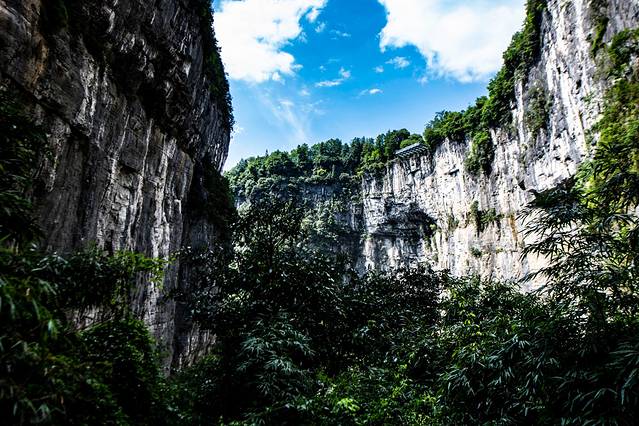 早餐后,在长滨路白象街自助租车点取车,然后自驾3个小时,到达天生三桥景区。进入景区后,乘坐观光电梯下到谷底的天坑中,再沿着坑底幽静的小道步行游览。此时环顾四周,满目苍翠,有溪水流淌;抬头仰望,四处是悬崖万丈,有山泉从上飞泻而下。站在天坑底部欣赏美景的同时,一种压迫感扑面而来。