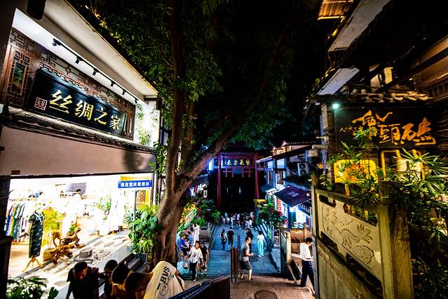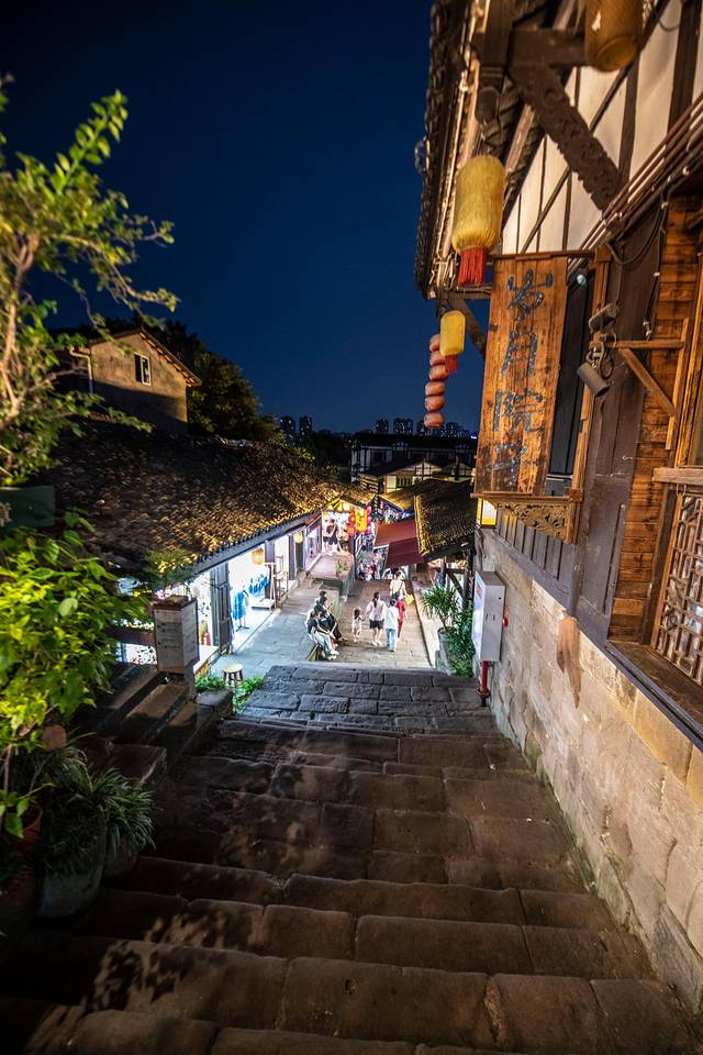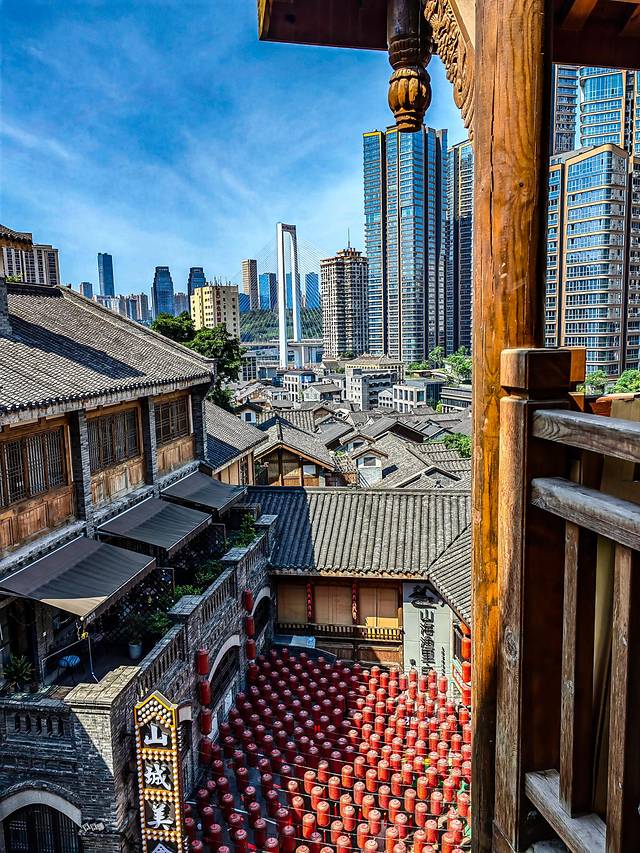 十八梯象征着真正的山城老重庆,相传在明朝的时候,这里本来有口水井,附近的居民都吃这口井里的水,这口水井距离居民的住处正好十八步石梯,因此得名。老街上散发着浓浓的市井气息和现代生活的融合,掏耳朵的、修脚的、住店的,以及一杯酸奶、蜜雪冰城、铜饰品店等散布在老街各处,和谐相处,相得益彰。在这里偶遇亲友,晚上,在世界第一大火锅城共进晚餐,品美酒,赏夜景,快哉快哉。