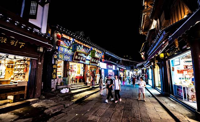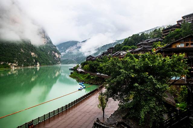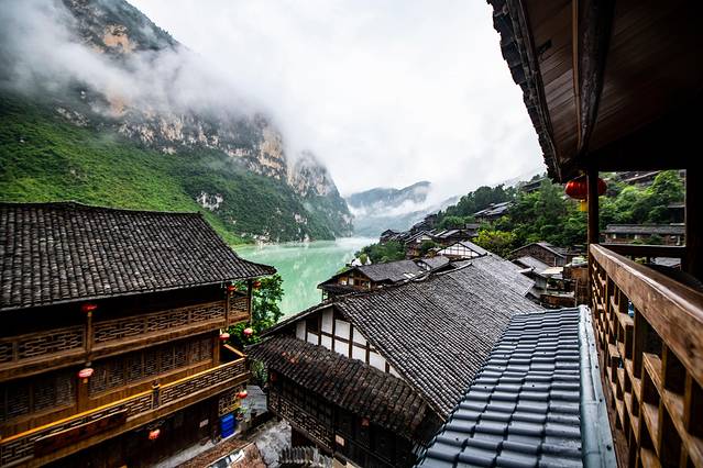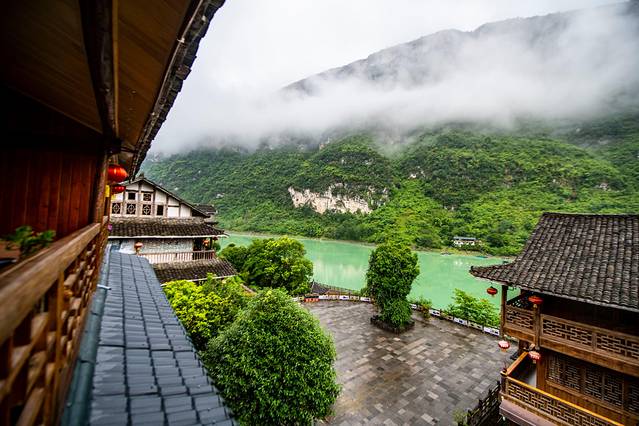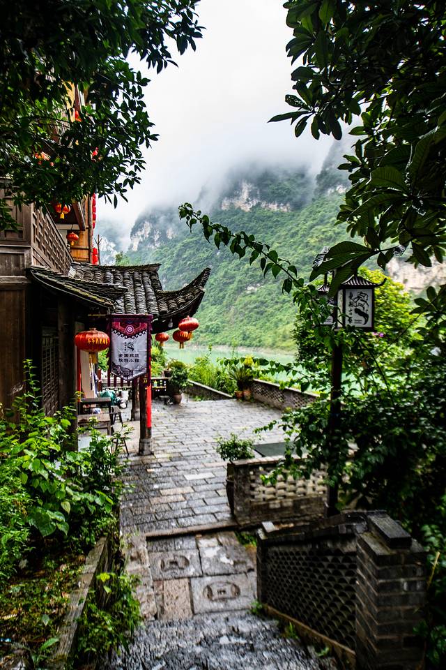 原计划自驾前往彭水万足码头,乘游船至龚滩古镇,全程游览乌江画廊,约2个多小时。彭水万足码头距离龚滩古镇约60公里,由于是自驾,就必须有一人驾车前往龚滩古镇,去接其余坐船的人。对于我们夫妻二人来说,很麻烦。于是,改变原计划,驾车直接到龚滩古镇,沿途有几个观景平台,供大家观景拍照,但都是收费的,就放弃了。遇到可以停车的空地,效果一样的。在民宿住一宿,第二天早餐后,前往古镇码头乘船游览乌江画廊(贵州方向),体验了一把“船在江中行,人在画中游”的感觉,真的让人流连忘返。全程约1个小时,返回古镇码头后,驾车约5个小时,到达磁器口后街景区地下停车场,按照酒店老板指示,乘4号电梯直升4楼,出来后就是人流涌动的步行街,这上上下下的,人都有点恍惚了。