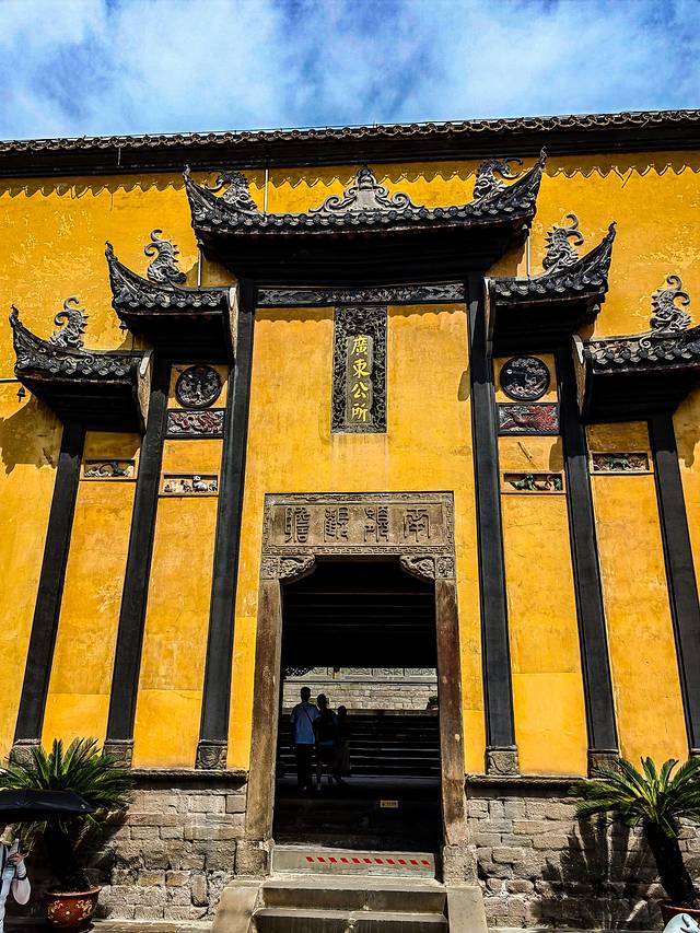 湖广会馆又称禹王宫,是中国明清时期南方建筑艺术的代表,也是中国现存规模最大的古会馆建筑群。整体建筑依山而建,鳞次栉比,结构严密,气势宏伟。大殿、戏楼雕梁画栋,粉壁彩屏,富丽堂皇,飞檐下的环楼木雕,雕刻着“二十四孝”和《西游记》、《封神榜》中的人物故事和山水花鸟,工艺,刻镂逼真,画面屡出不穷。会馆的辕门建筑的石雕上山水、人物和花鸟图案,玲珑剔透、千姿百态,工艺十分精巧。