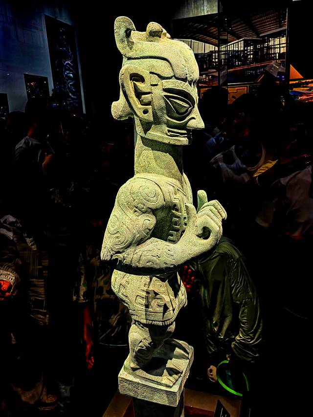 按照事先约定,在讲解员的带领下进入三星堆博物馆。三星堆博物馆的展示面积近1.2万平方米,现有两个展馆,分为综合馆(陈列金、铜、玉、石、陶等类文物)和青铜专馆。展馆陈列规模宏大,布局考究,内容与展线节奏动静结合,波澜起伏,给人以身临其境、故国神游的感觉。全程三小时的讲解,宣讲了三星堆文物的深刻内涵和三星堆文明的辉煌灿烂,所以,请一个好的讲解员是圆满参观的必要条件。晚上,在享用了地道的鲜货火锅后,结束完美的一天。