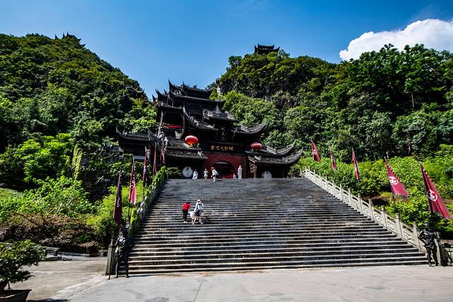 磁器口古镇,这个当年热闹的水陆码头,有十几条街巷,两旁边都是明清风格的建筑,古镇不大,根据指示牌步行游览完全没有问题。钟家院、通家院等是古镇中典型的川东山地民居,古镇内能够品尝到很多当地的美食和小吃,毛血旺、千张皮和椒盐花生是镇上的“美食三绝”。更出名的是“陈麻花”,镇上有很多家“陈麻花”,至于哪家正宗嘛,就只能看哪家门店前排队长啦。古镇距离歌乐山的白公馆、渣滓洞不算远,在游览完大足石刻回来的路上,去歌乐山转了一圈,再接受一次爱国主义教育。晚餐后,观看了一部大型红色舞台剧《重庆1949》,该剧采用360度旋转舞台和沉浸式观演设计,让观众与演出融为一体,经历一场身临其境的独特视听体验。由于编剧水平有限,剧情推进不够清晰,略显不足。