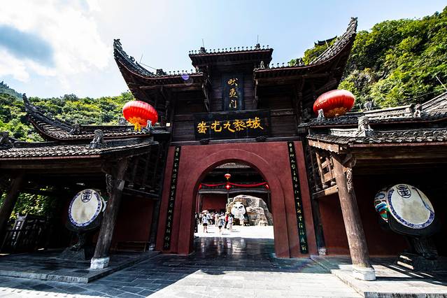 蚩尤九黎城,以苗族始祖蚩尤文化为主线,集中展示了苗族的传统文化和建筑,充满了浓郁的苗族风情。九黎城主要建筑有蚩尤大殿、九道门、九黎宫、蚩尤神府、九黎神柱等苗族特色建筑。