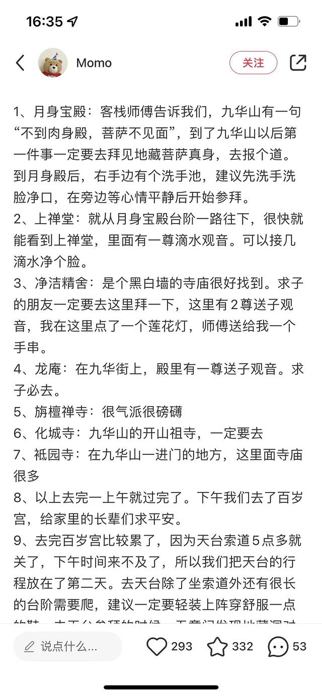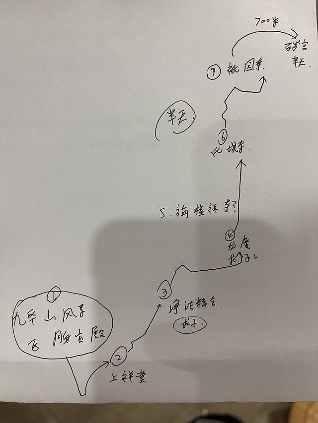第二天早上吃完自助早餐,8:30多才出发去坐公交,买票五块钱一个人,可以到月身宝殿下车,直接从月身宝殿往下游览,结束直接到酒店了哈!如果你有完整一天就可以,一早坐车去天台,游览完,到月身宝殿下车,下午游览月身宝殿这片的景区!这个就不用多浪费5元一张的车票了哈!不过累计步数挺多的一天走完估计要三千步这样,我第一天18000,第二天11000,具体走的顺序有攻略也发在下图中了哈!