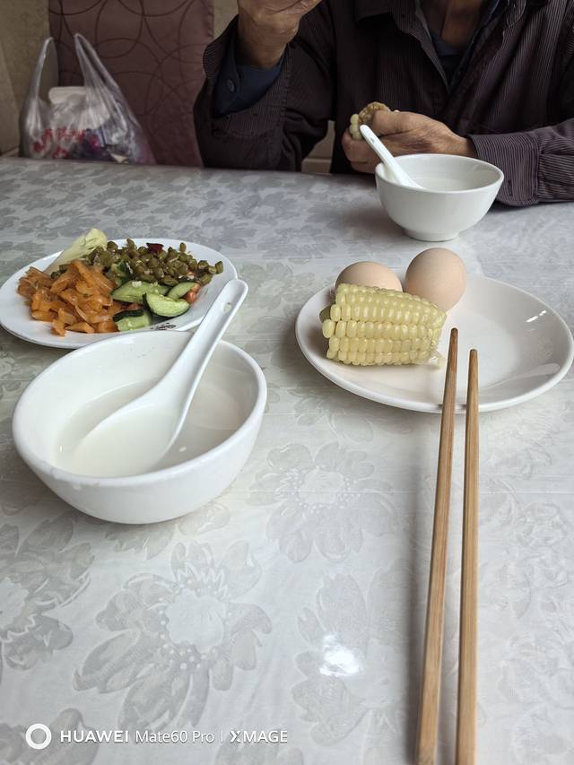 山庄的早点简单,有稀饭,咸菜和鸡蛋,我们很是满足!此所谓精神上饱足,物质上不挑!