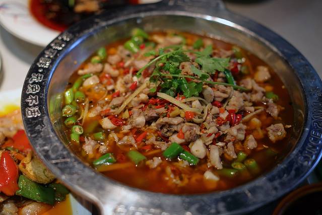 兔,作为食材,自贡最纳手,几乎成了自贡的代名词。满盘麻辣鲜香,肉质白细嫩滑。大盘上刻“无姜不鲜,无兔不活”。自贡大街上到处都是吃鲜锅兔的地方,真相信一句话:没有一只兔子能活着走出自贡。