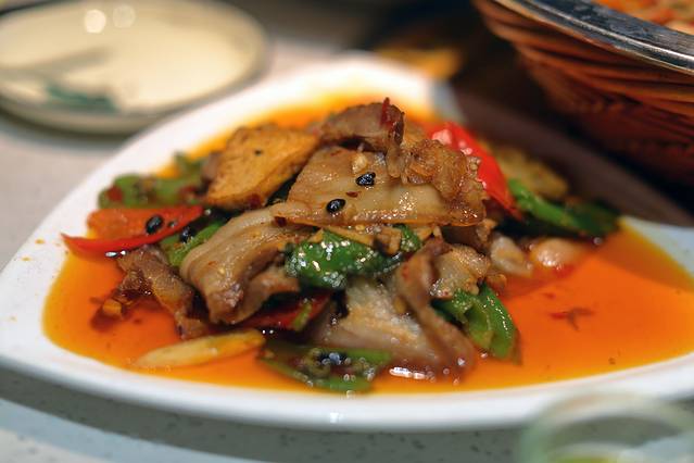 回锅肉是川菜中的一道经典菜品,被广泛认为是川菜之首,尤如湘菜的辣椒炒肉。回锅肉的妙处在于先上水煮后回锅炒,肥而不腻,是学徒扣开川菜大门的第一道菜。我们在家诚心要做,就老早去市场称上“二刀肉”,而饭店用量大,也就不那么将就了,多用五花肉。但川厨刀功了得,薄如蝉翼。