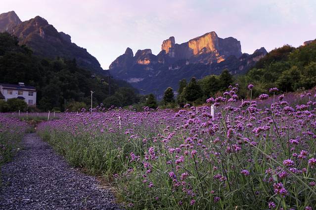 张家界以“双5A”为核心卖点,每年吸引数千万人次来观光旅游。此时的8月,天门山麓紫色的马鞭草正优雅的盛开。