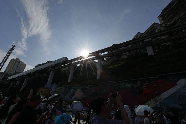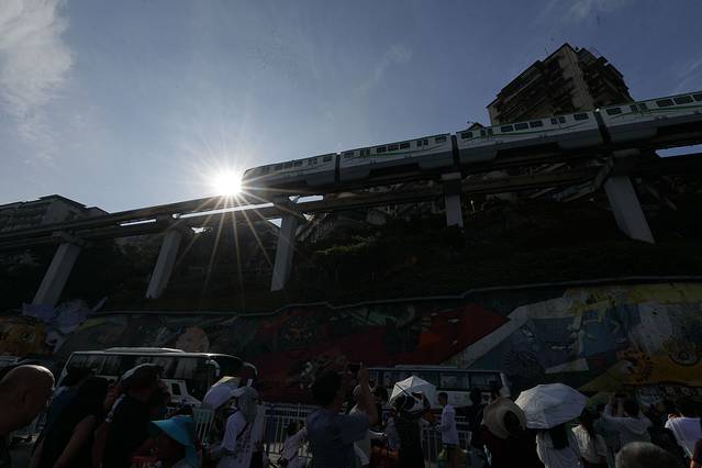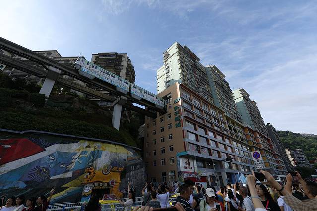 轻轨每七分钟一趟,前来打卡的游客也是一拔接着一拔。