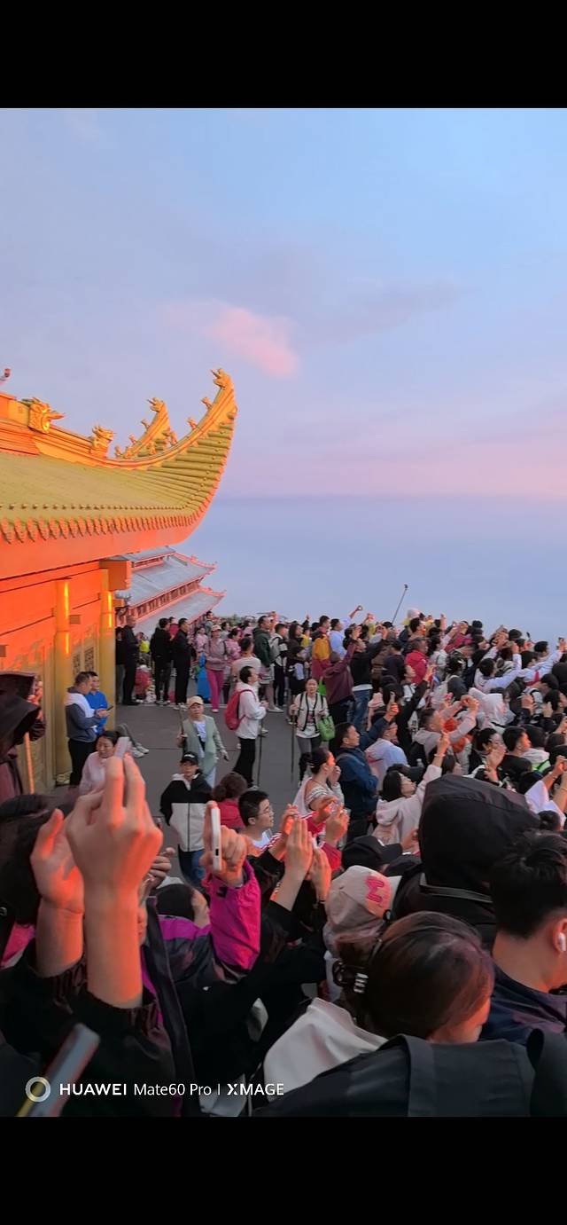 金色的金顶,与金色的阳光共振,整个峨眉山上浓墨重彩,更加金碧辉煌!这柔和的晨光,滋养着大地上每一个人,也美颜了每一位心存向往、不辞辛劳观看日出的人儿!