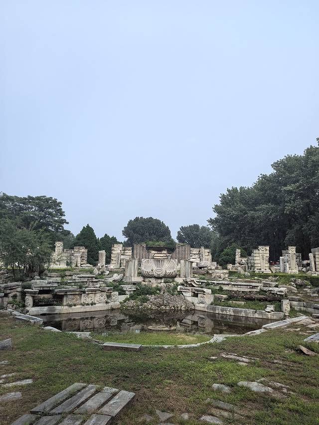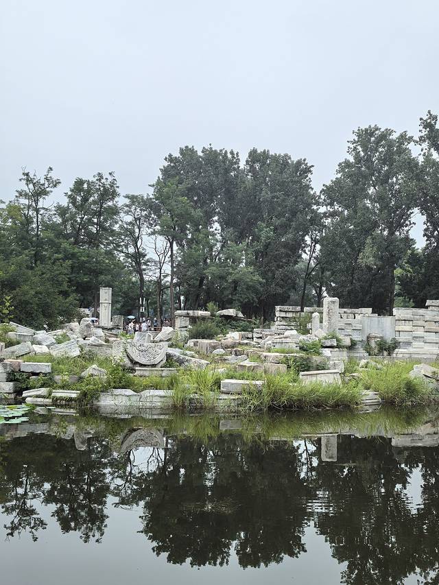下了船,就到了遗址公园,还要重新买票。这个地方人就多了,人山人海,今日的断壁残垣依稀可见当时的奢华辉煌!各个不同的景致,大气宏伟,令人叹息,小孩还小不懂圆明园的含义,勿忘国耻于他们而言是似懂非懂!
