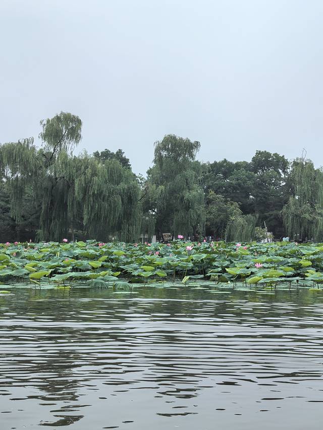 从北大出来,走了不久就到了圆明园,二十年前没有来看过,一补遗憾!看了攻略,说的坐船后就是遗址。没有导游,就边走边看,问了一下找到坐船的地方,一个不大的湖,坐船的要排队。买了船票就排队上船,10人一个船。湖上开满荷花,窄窄的湖道晃晃悠悠,咦,怎么还要换个大船?上了大船开出来,视野一下无限开阔,面前展现出一个巨大的湖,老公不禁感叹:怪不得大清要亡啊!