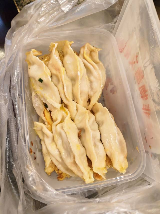 旁边就是小街锅贴,可以尝尝味道,皮厚,底不脆,汤汁少。