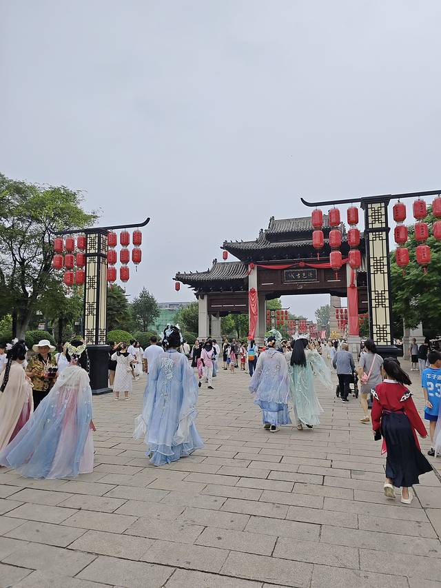建议大家出行用电动车,美团上有团购,4.5元骑了10次,就是景点门口不让停车,需要多骑200米再往回走,不然会罚停车管理费10元。从大运河博物馆骑美团电动车到洛邑古城只要几分钟,白天的古城都是穿古装拍照的,晚上有灯光和表演应该更有氛围感。出口就是十字街,沿着十字街可以走到丽景门,一路上各种美食。