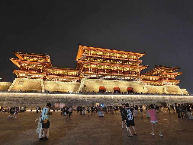 应天门是地标建筑,武则天登基的地方,被称为“天下第一门”,看夜景和拍古装照的人很多,北广场周末八点半有灯光投影秀,堵车非常严重,从下午四点堵到晚上十点,晚上千万不要打车过去。12岁以下儿童免票,教师资格证半票。进去只能上到二楼,除非观看《唐宫乐宴》可以登顶。也有一些几分钟的免费唐风表演,可以查好时刻表去观看。