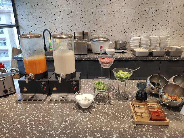 环境:店铺就在路边,很小很简陋,一不小心就会错过。早餐时间特别多人,根本没人收拾,基本就是自助。