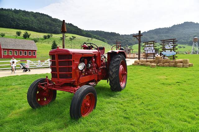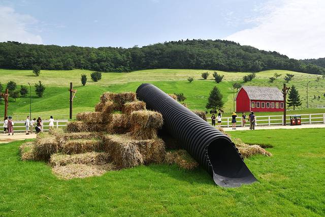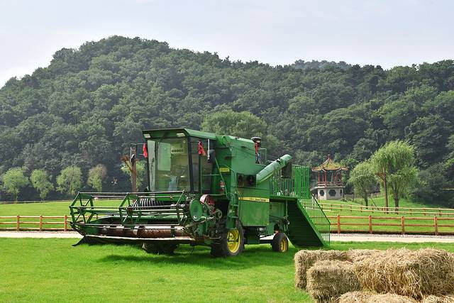景区设置了很多拍照打卡点,拖拉机、收割机、草垛,在蓝天白云绿草之间,随手一拍就是一幅好风景。