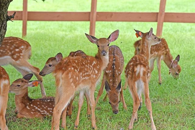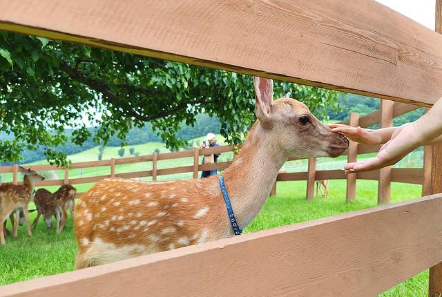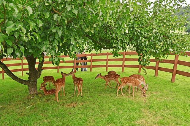 最好玩的是这群小鹿,可能见惯了来来往往的游客,它们并不怕人,可以近距离接触,甚至摸摸它。不过要听工作人员的指挥,不要惊吓到它们,特别是出生不久的小鹿不能投喂食物,人家还是吃奶的宝宝。